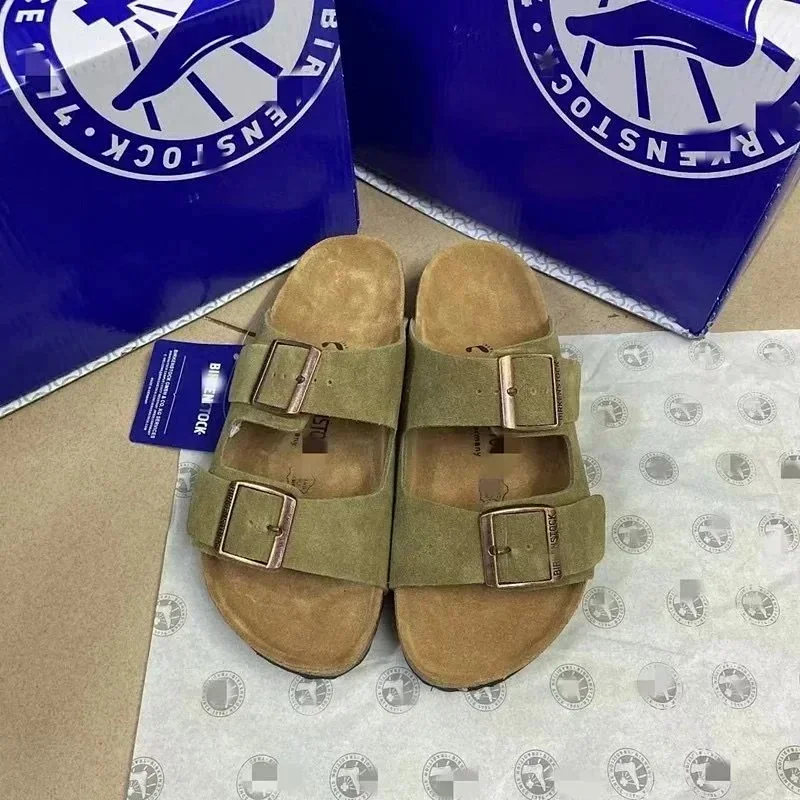 BIRKENSTOCK Lazy men's and women's double buckle flat slippers genuine leather cork footbed comfortable outdoor sandals-2342
