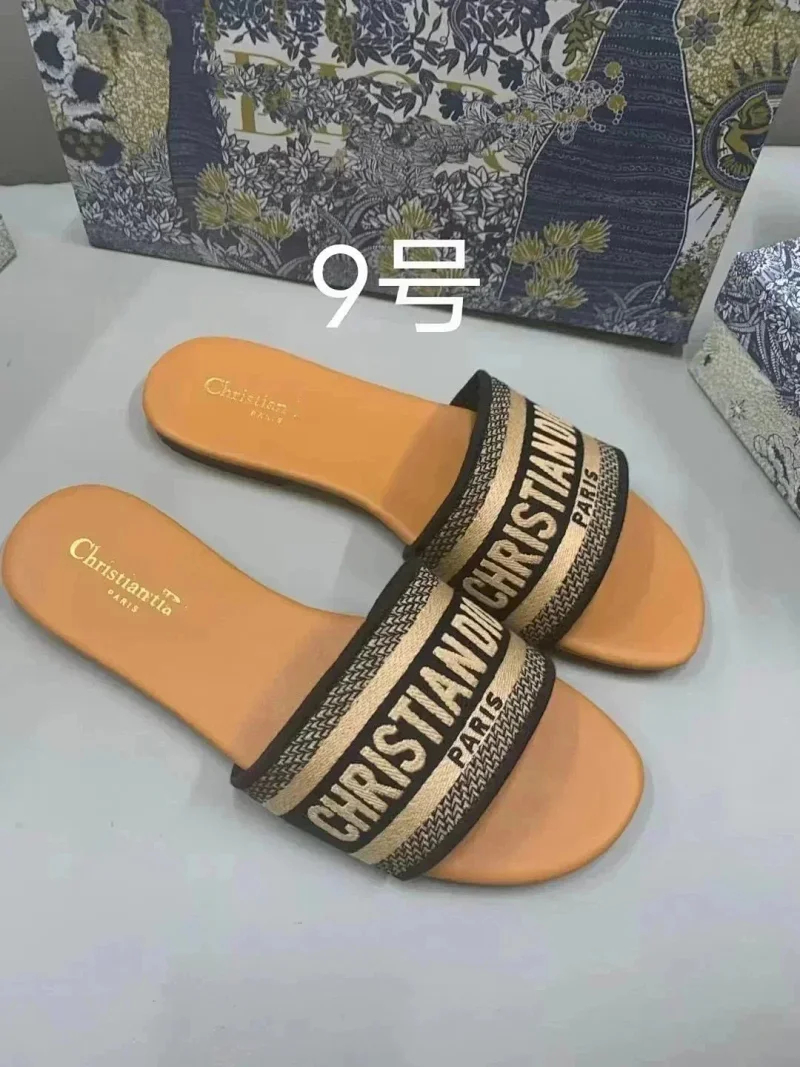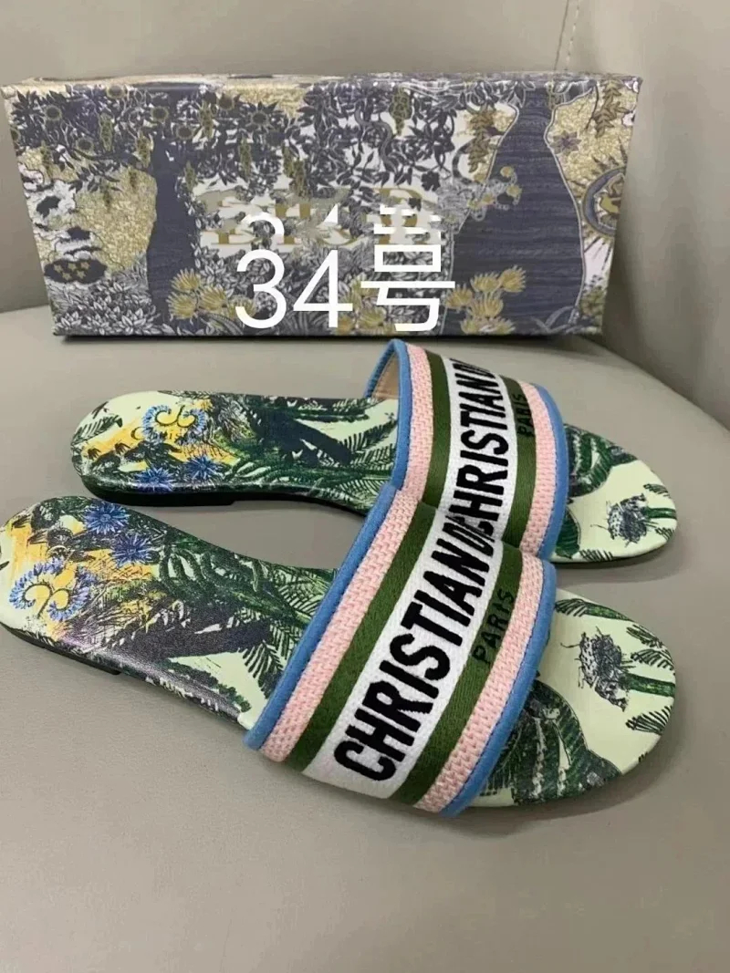 Home > Dior 2025 new summer genuine leather letter embroidered outerwear women's slippers-2336