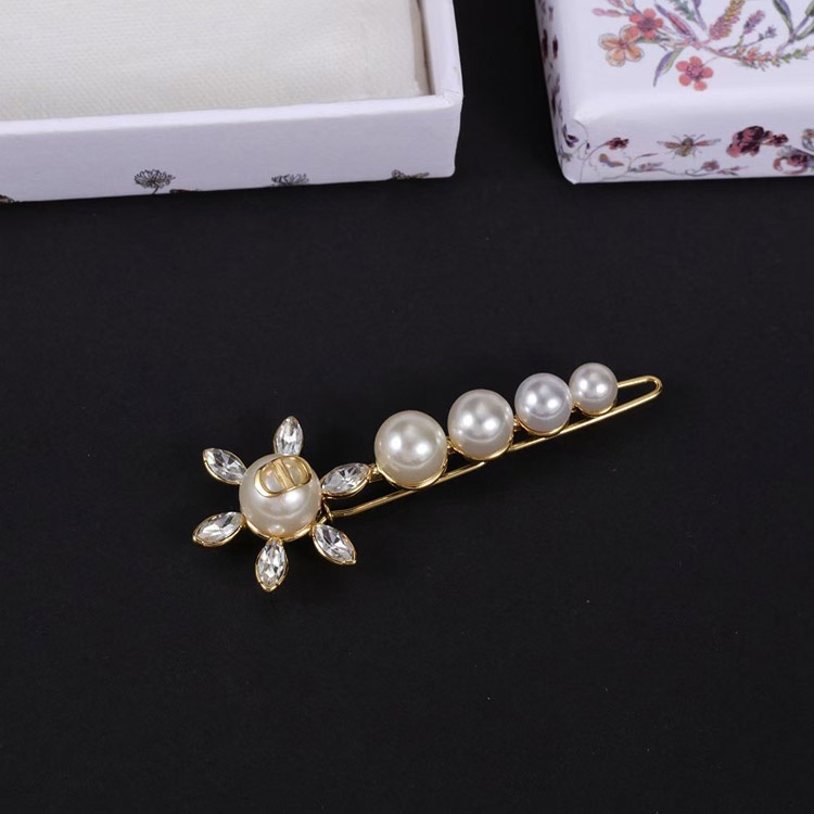 Dior Sunflower Pearl Rhinestone Hairpin Clip-3890