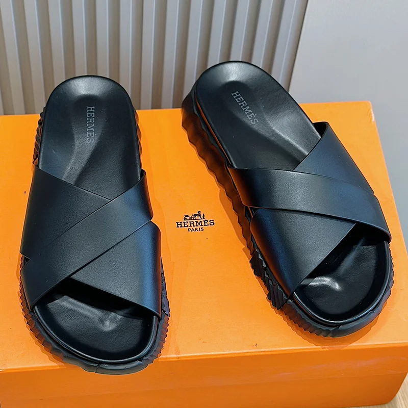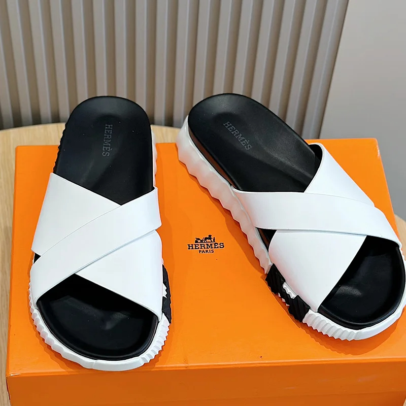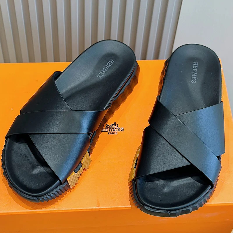 Hermes summer luxury leather flip flops Baita sandals-2334