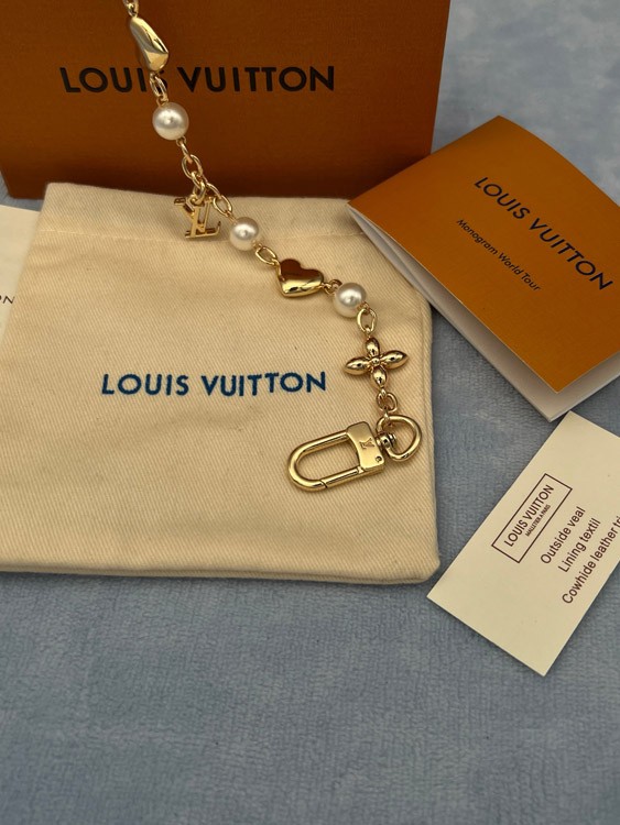 Louis Vuitton LV metal chain embellished with letters, flowers, heart-shaped pearl bracelet-3886