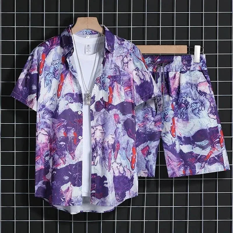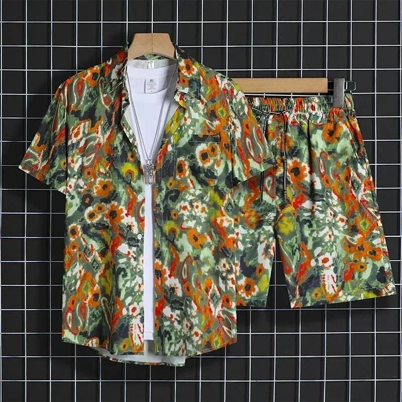 Summer Ice Silk Flower Shirt Short Sleeve Loose Suit (40 styles)-2783