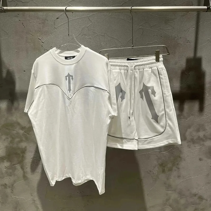 Trapstar Sword Reflective Print Lettering Short Sleeve T-Shirt Shorts Set-2827
