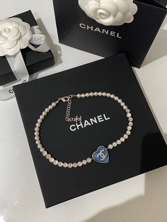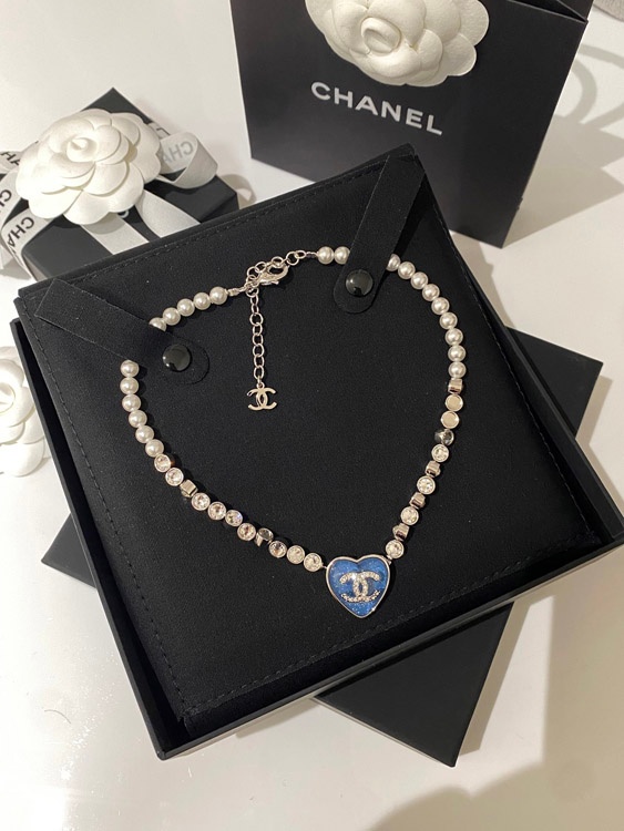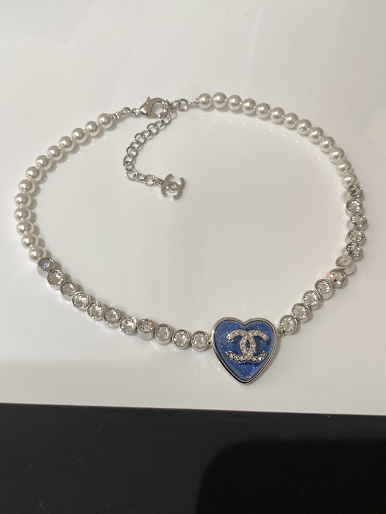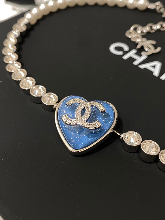 Home > Chanel blue heart pearl rhinestone necklace-3594