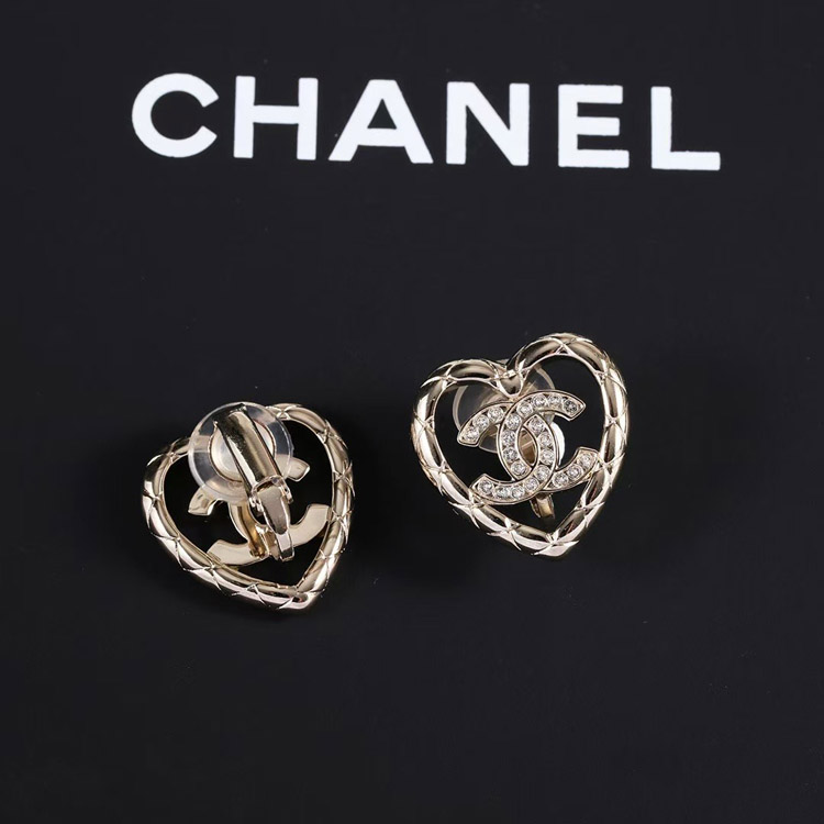 Chanel gold diamond heart hollow double c rhinestone ear clip-3754