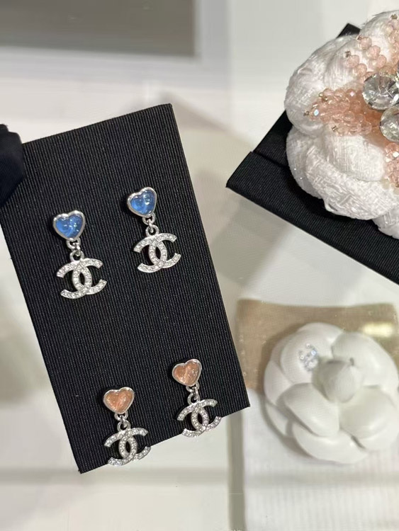 Home > Chanel pink little heart silver full diamond double C earrings-3747