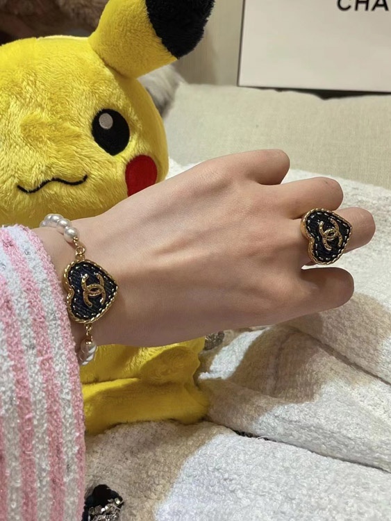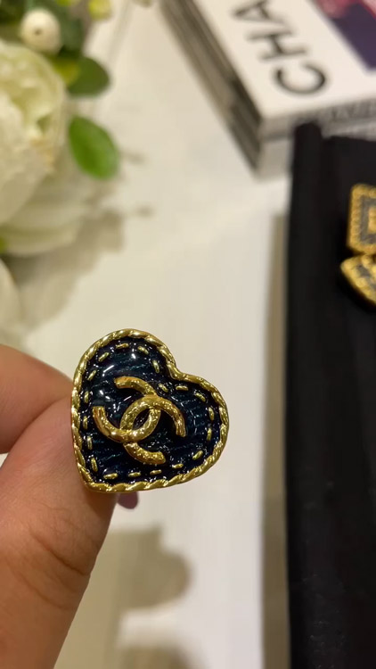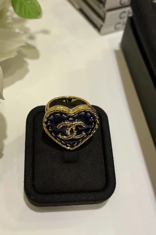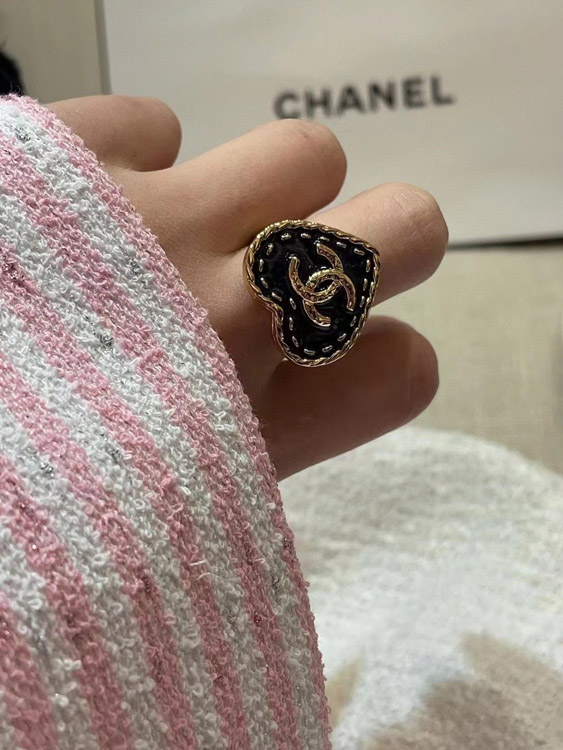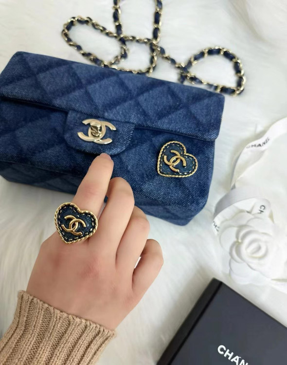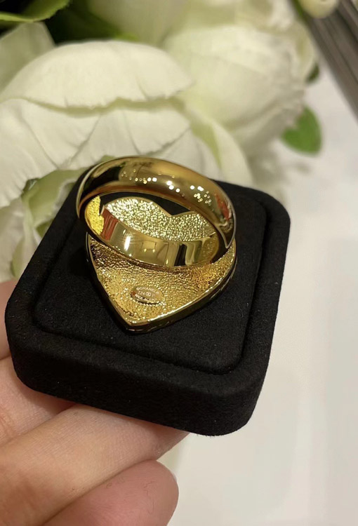 Chanel vintage gold double C denim pattern love ring-3738