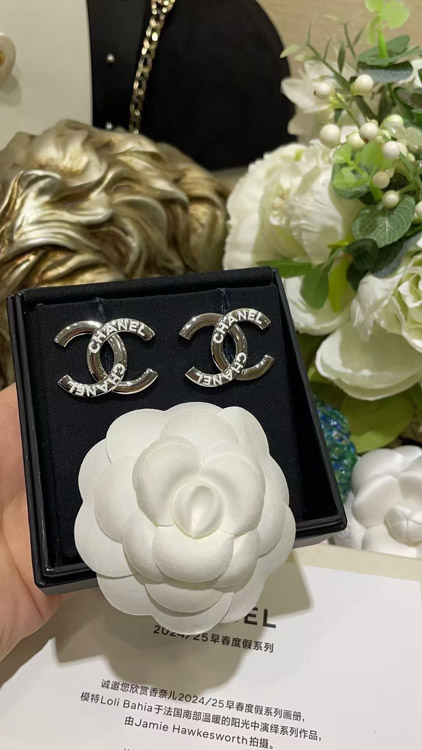 Chanel White Enamel Double C Silver Earrings-3743