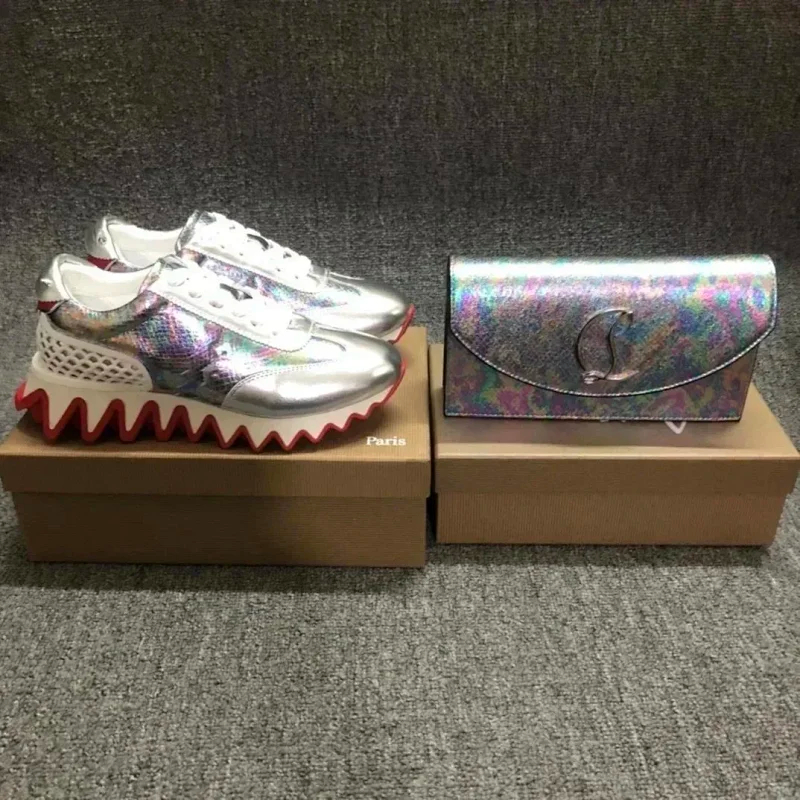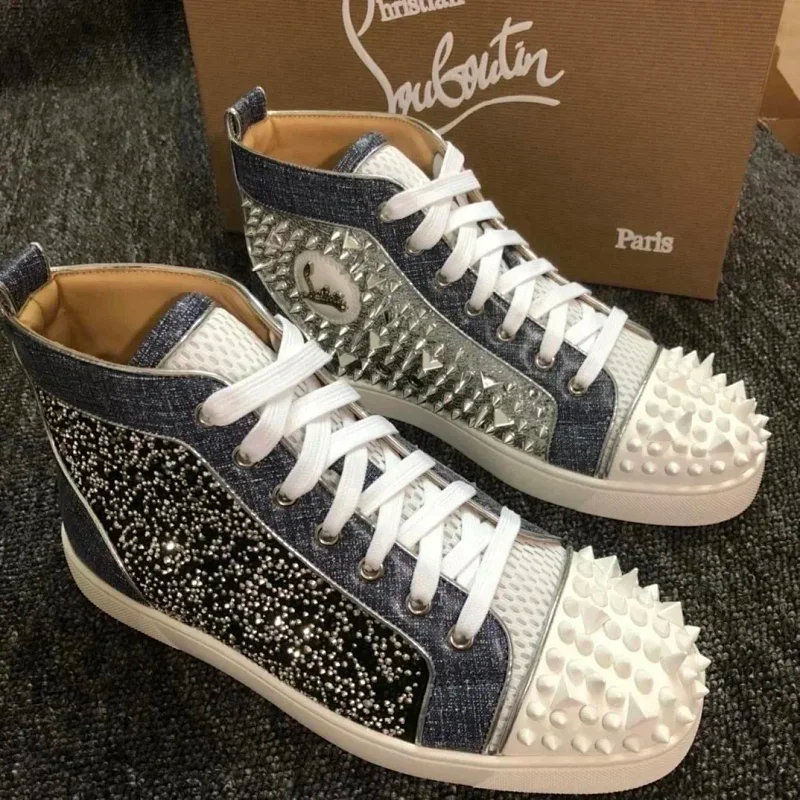 Christian Louboutin lightweight, anti-slip, height-enhancing glittered leather sneakers-2906