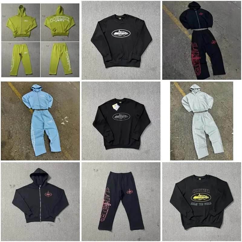 Corteiz Hooded Long Sleeve Zipper Sweatshirt and Sweatpants-4411