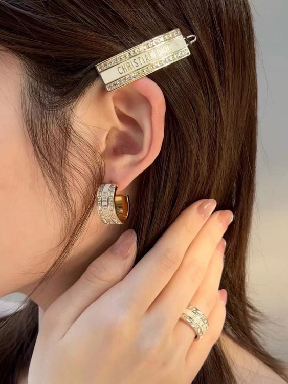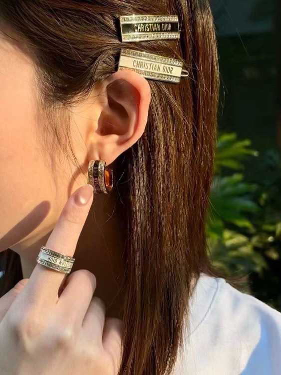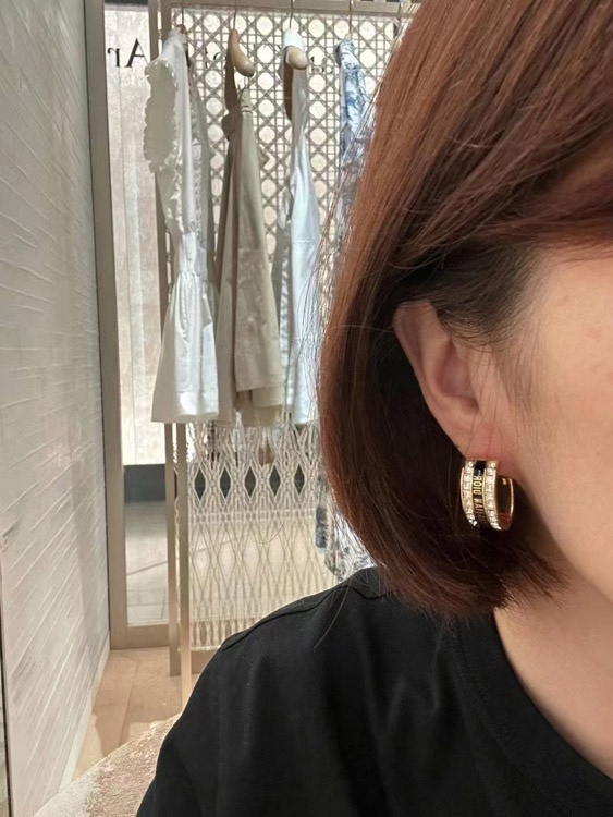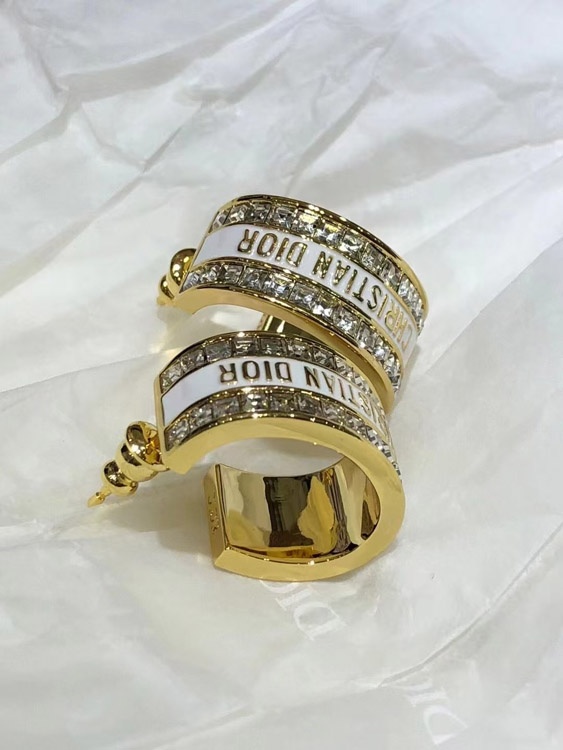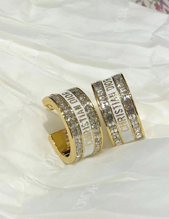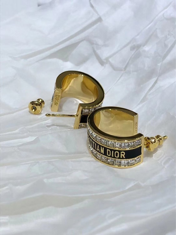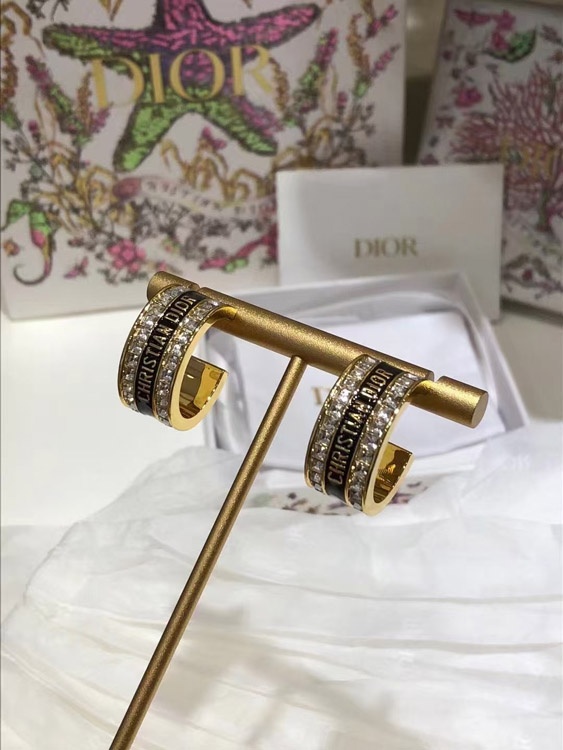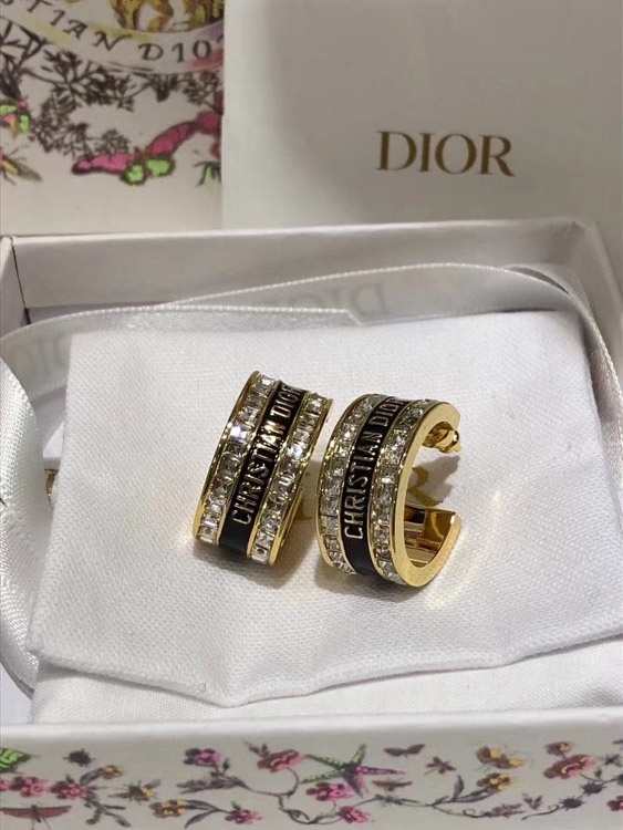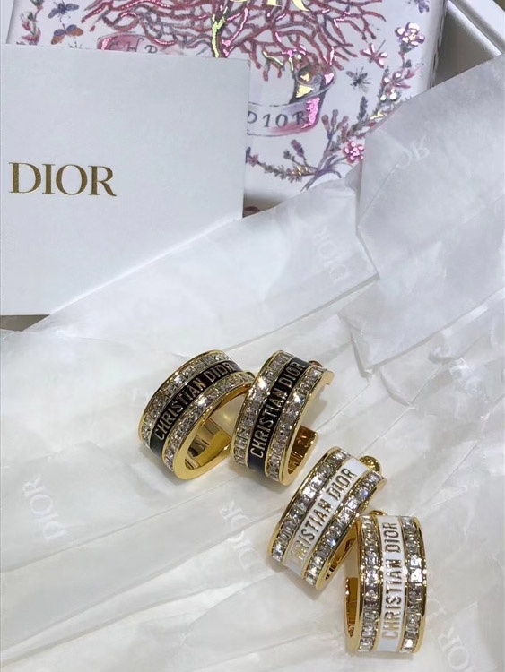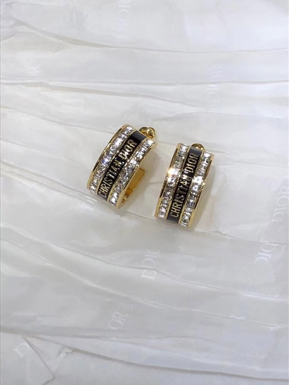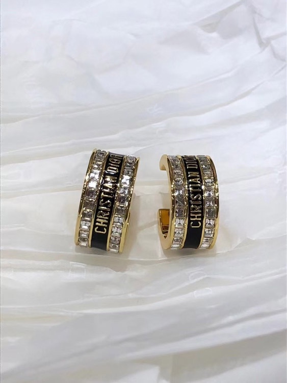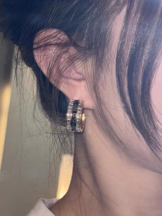 Home > Dior black and white enamel double row diamond earrings-3606