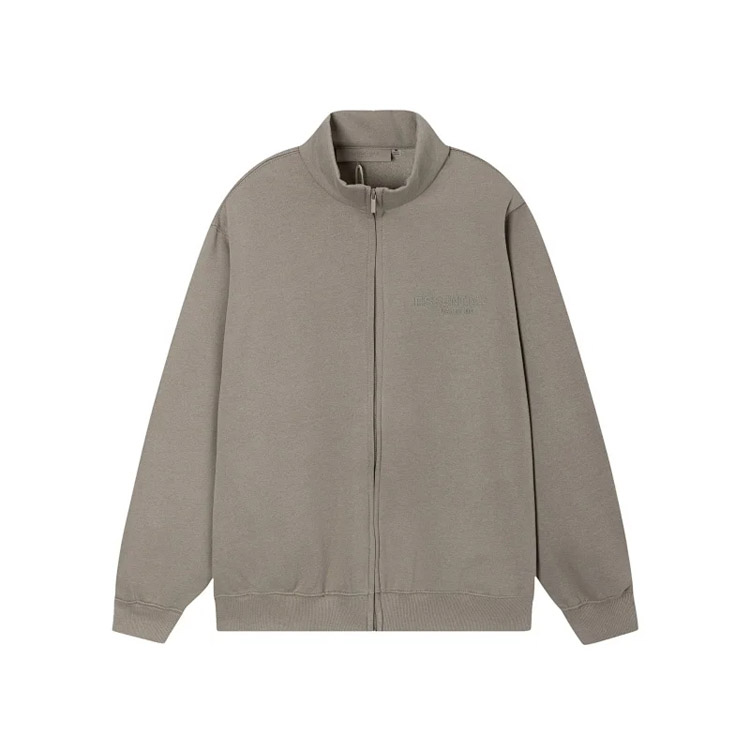 Essentials solid color letter print zipper long sleeve coat jacket-4366