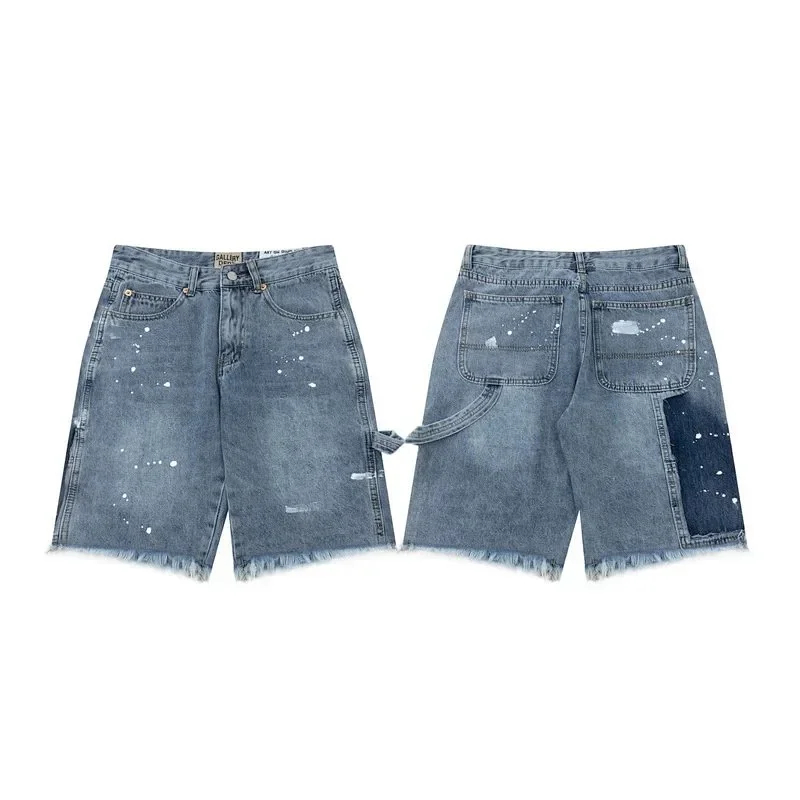 Gallery Dept embroidered letters washed jeans for women in high waist loose shorts with tassels worn out (7 styles)-2437