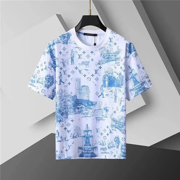 Gucci Fendi Versace Dolce & Gabbana Moncler Louis Vuitton Retro fashion brand loose printed short-sleeved top-2018
