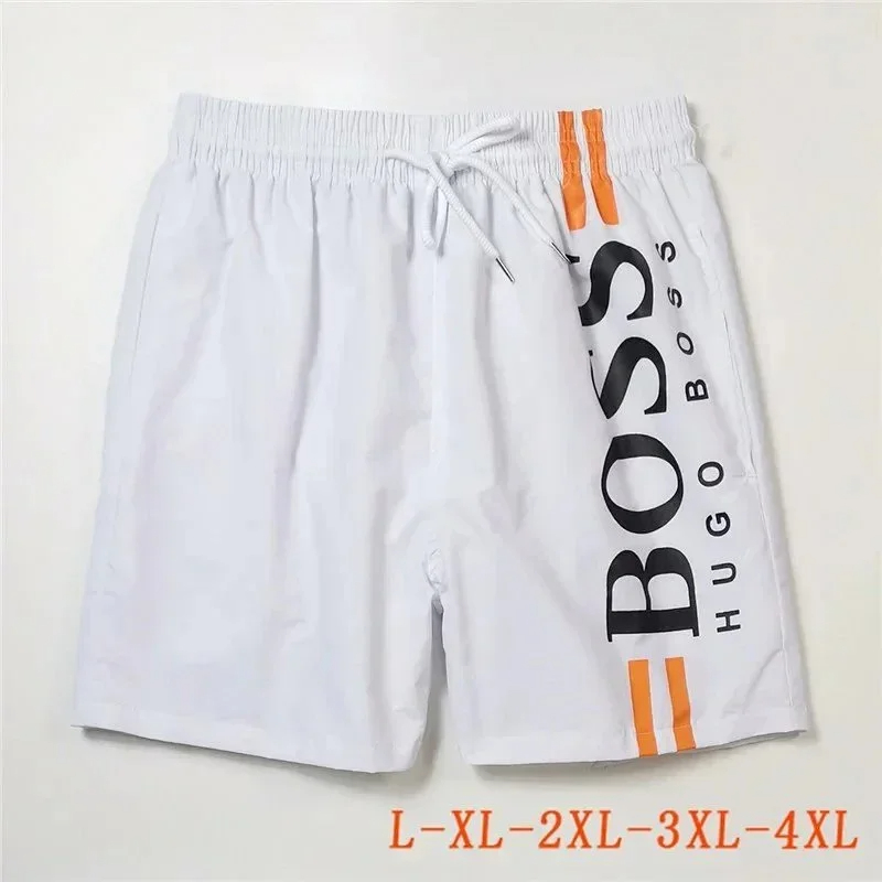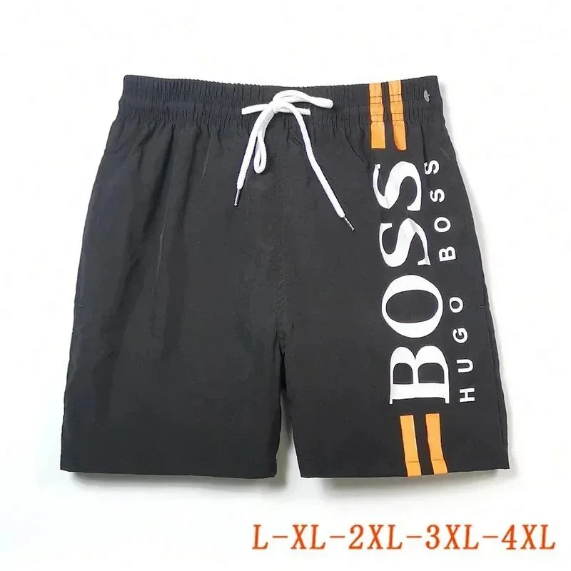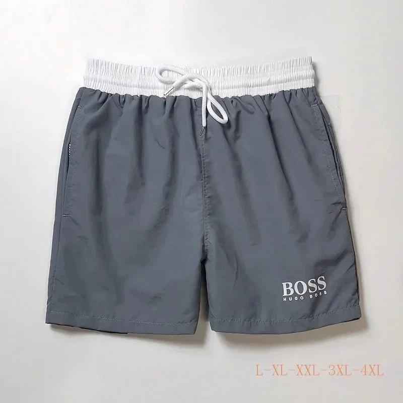 HUGO BOSS logo print quick-dry contrasting color waistband drawstring swim shorts-2881