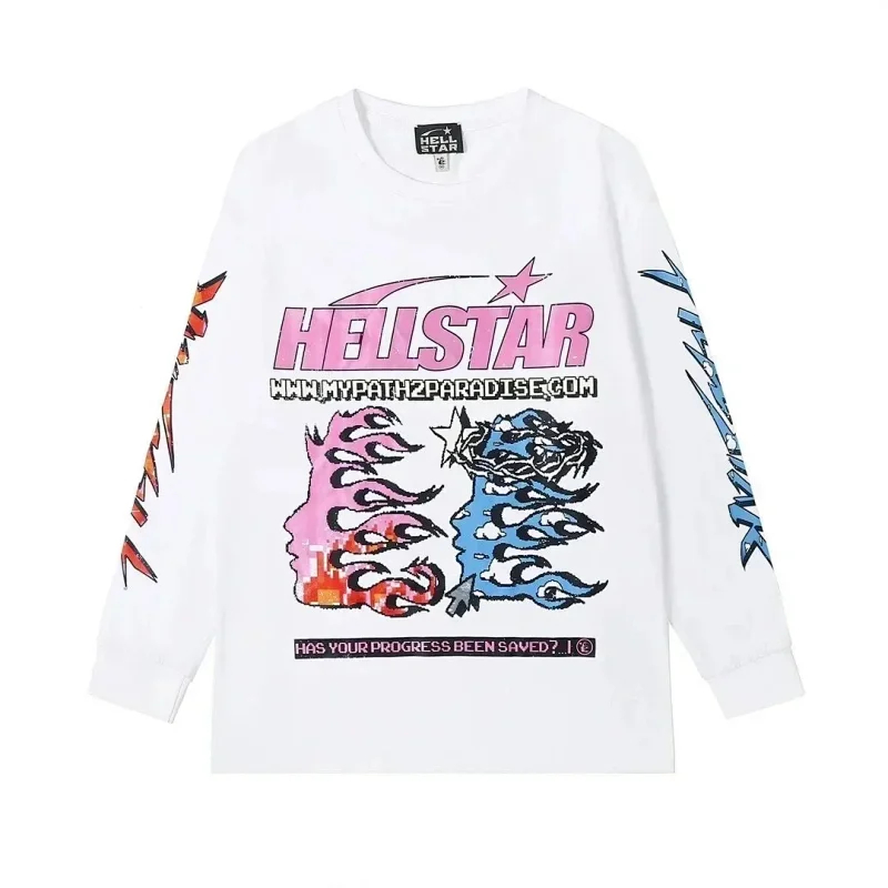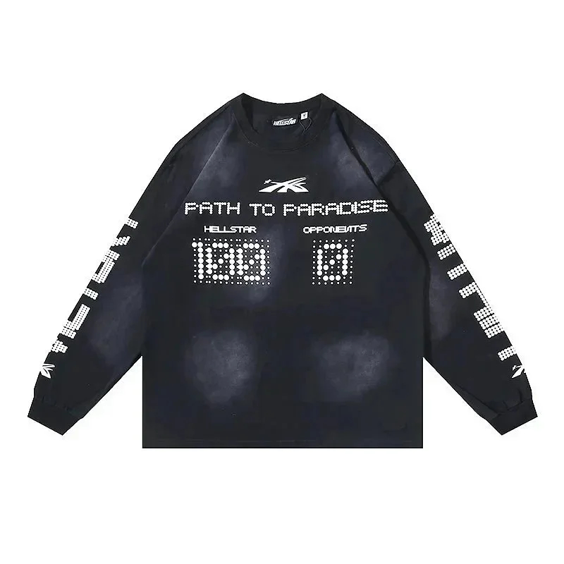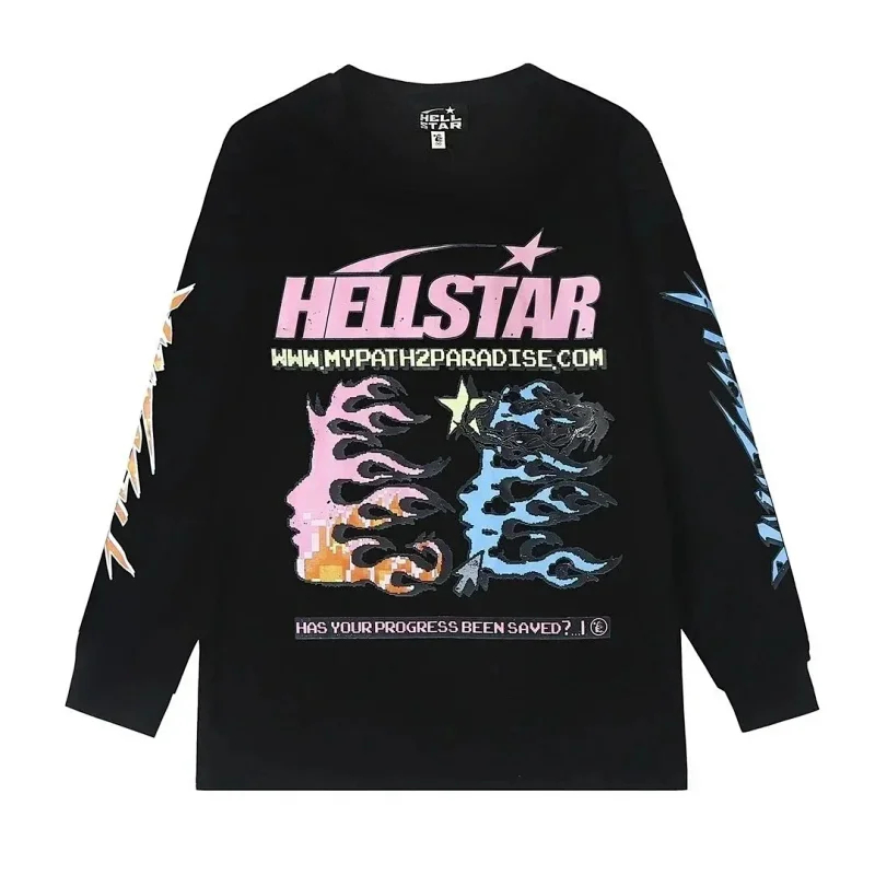 Ins same style Hell Star Retro Print Men's and Women's Loose Casual Long Sleeve T-shirt-2514