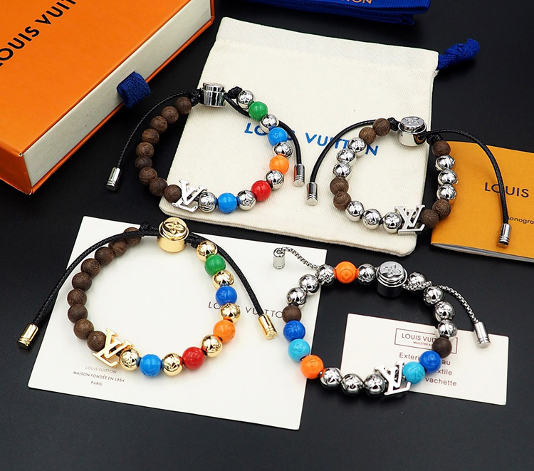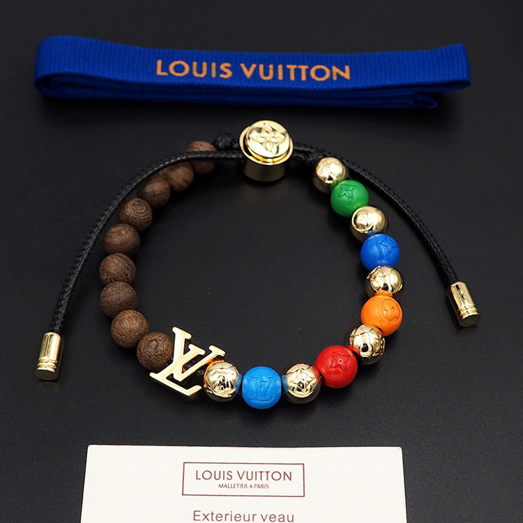 Louis Vuitton LV adjustable cord embellished wooden inscription metal beaded bracelet-3949
