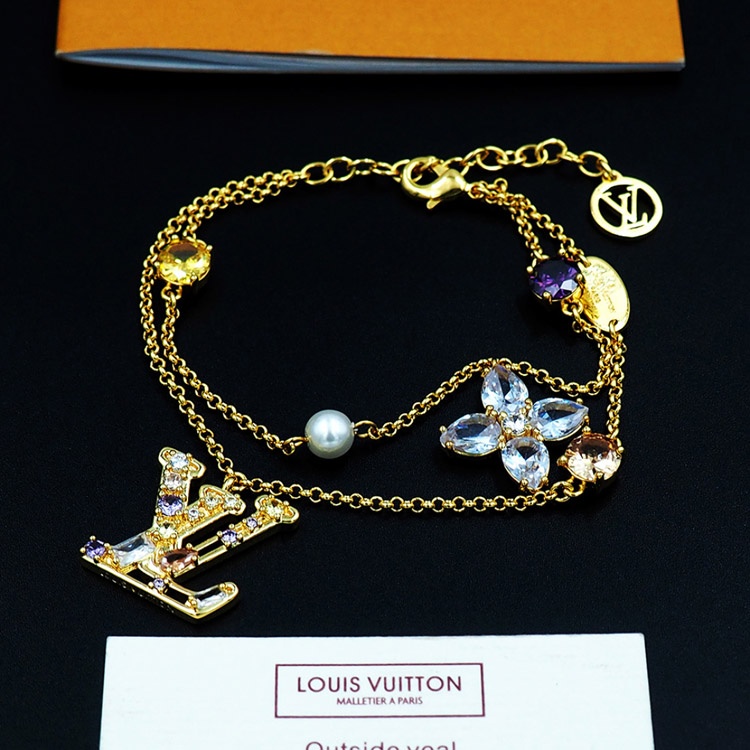 Louis Vuitton LV double metal chain inlaid diamond bracelet-3801