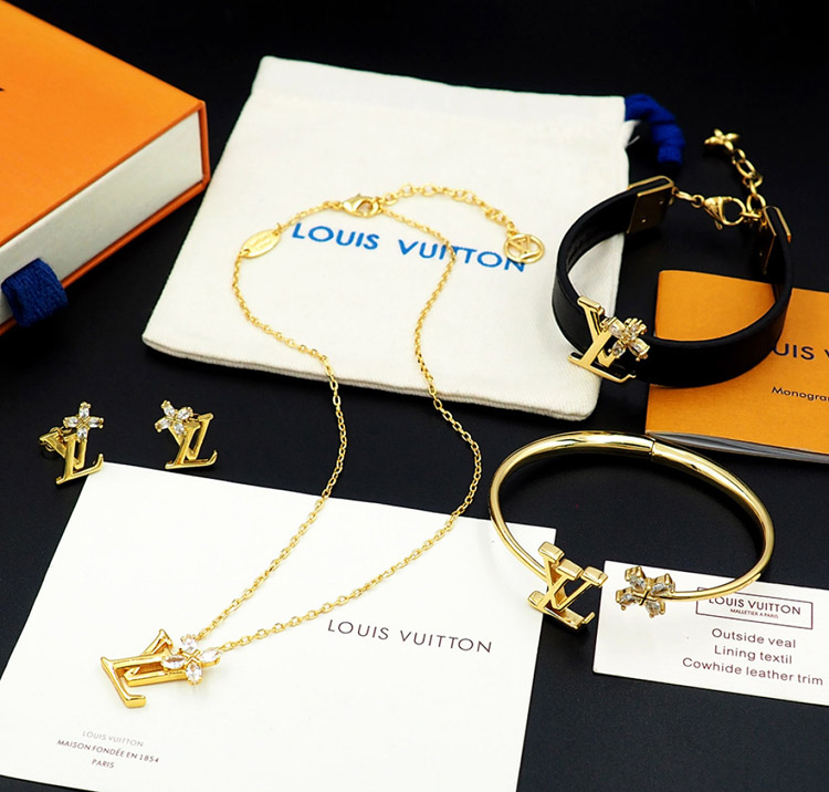 Louis Vuitton LV leather letter diamond metal chain bracelet-3809