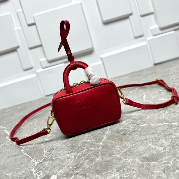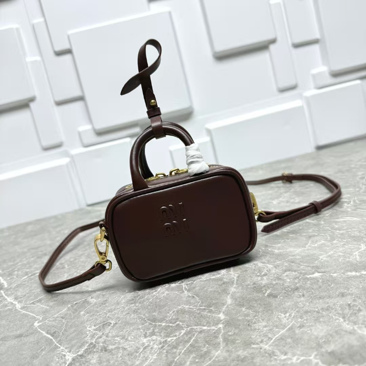 Miu Miu new mini leather bowling bag with shoulder strap-5819