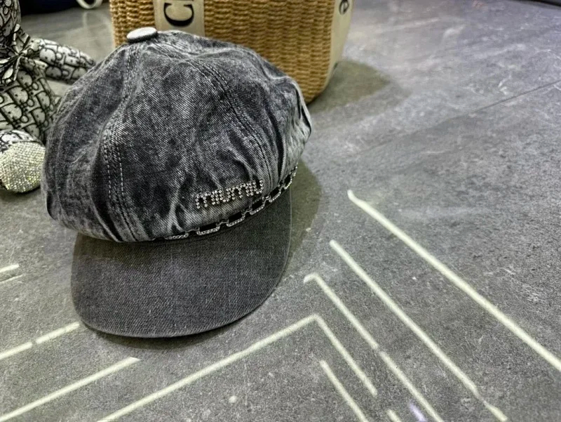 MIUMIU New arrival denim retro spring and summer duck tongue beret-2582