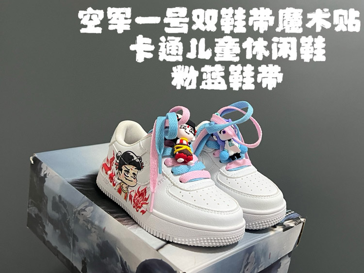 Nike Air Force 1 lace-up Velcro cartoon children's shoes-4127