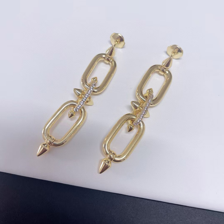 Tiffany diamond double ring chain earrings-4018